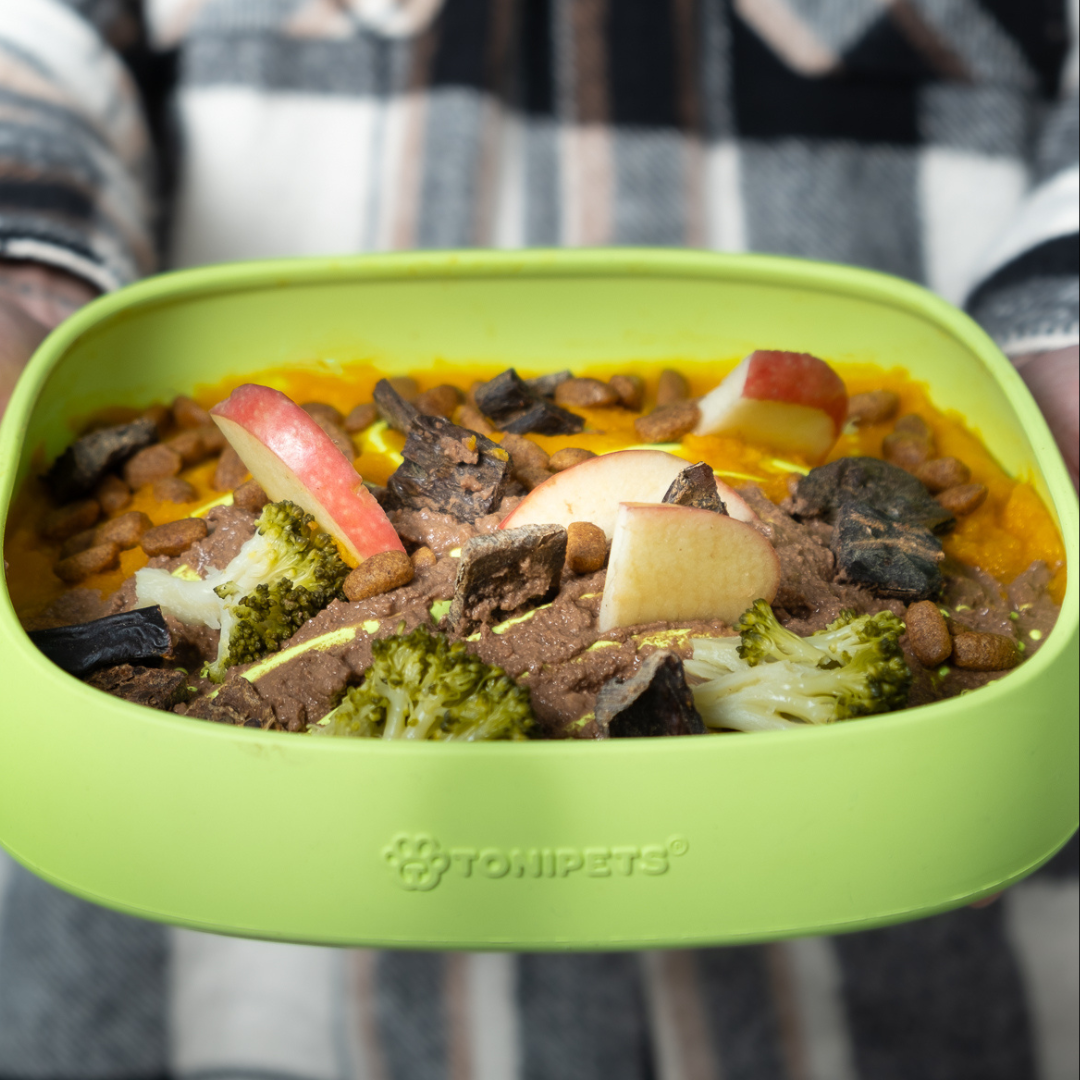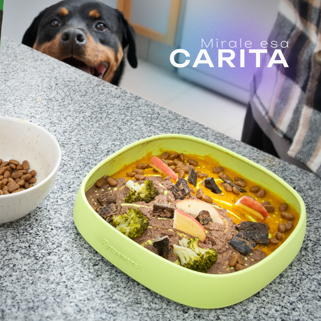 Para una sujeción óptima de las ventosas, se recomienda humedecerlas levemente antes de presionar sobre la superficie lisa. ¡Podés usarlo con yogur natural, purés, manteca de maní especial para mascotas o su alimento diario!