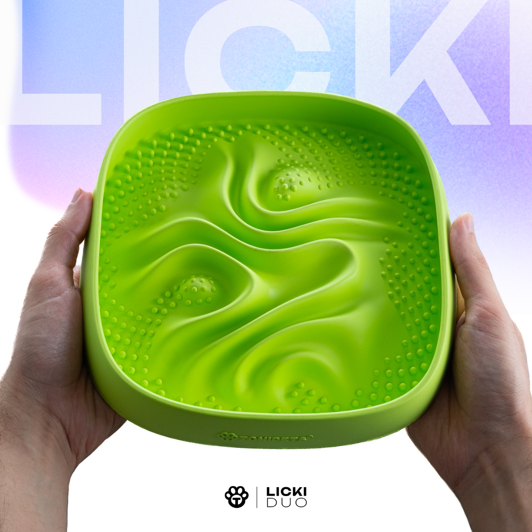 ¿Tu mascota come demasiado rápido o sufre de ansiedad cuando se queda sola? El Licki Duo es mucho más que un plato: es una herramienta de bienestar integral diseñada para perros y gatos de todos los tamaños.