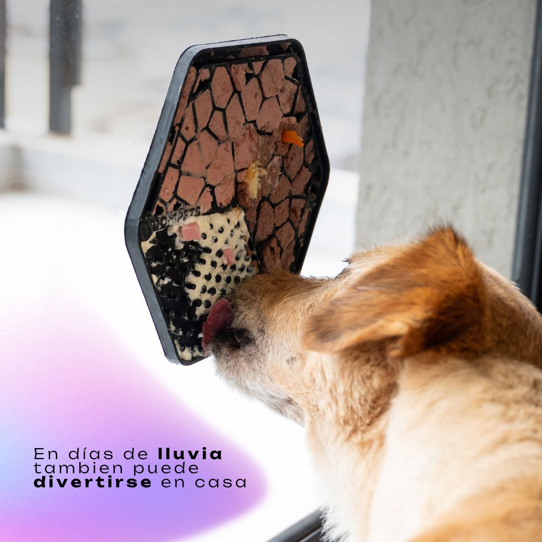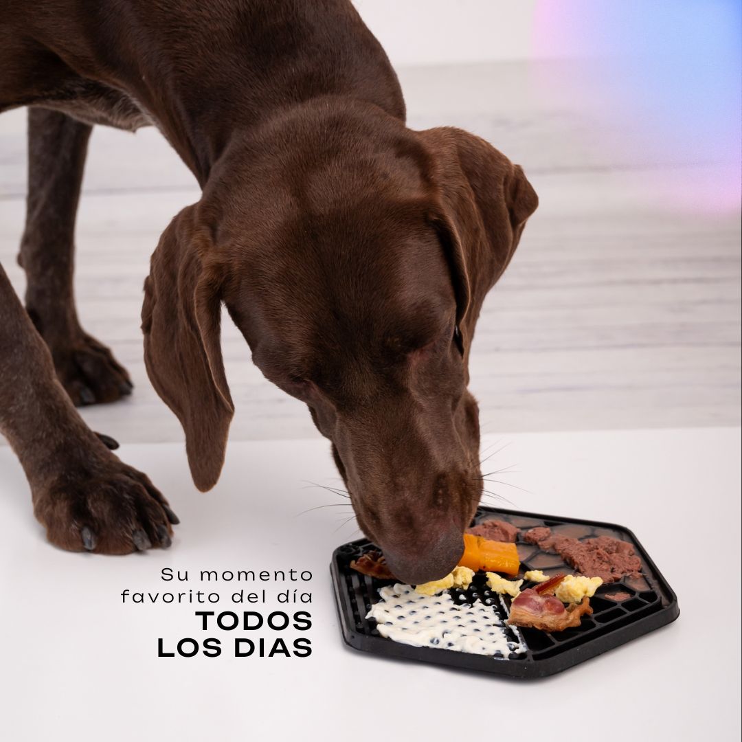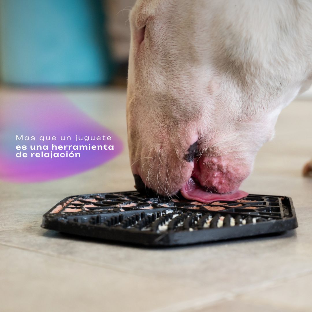 La Lickitoni no es solo una alfombra de lamer; es un aliado en la salud emocional de tu mascota. Su superficie con texturas en relieve invita a perros y gatos a explorar y lamer para obtener su alimento, una actividad que reduce drásticamente el comportamiento destructivo y la ansiedad por separación.