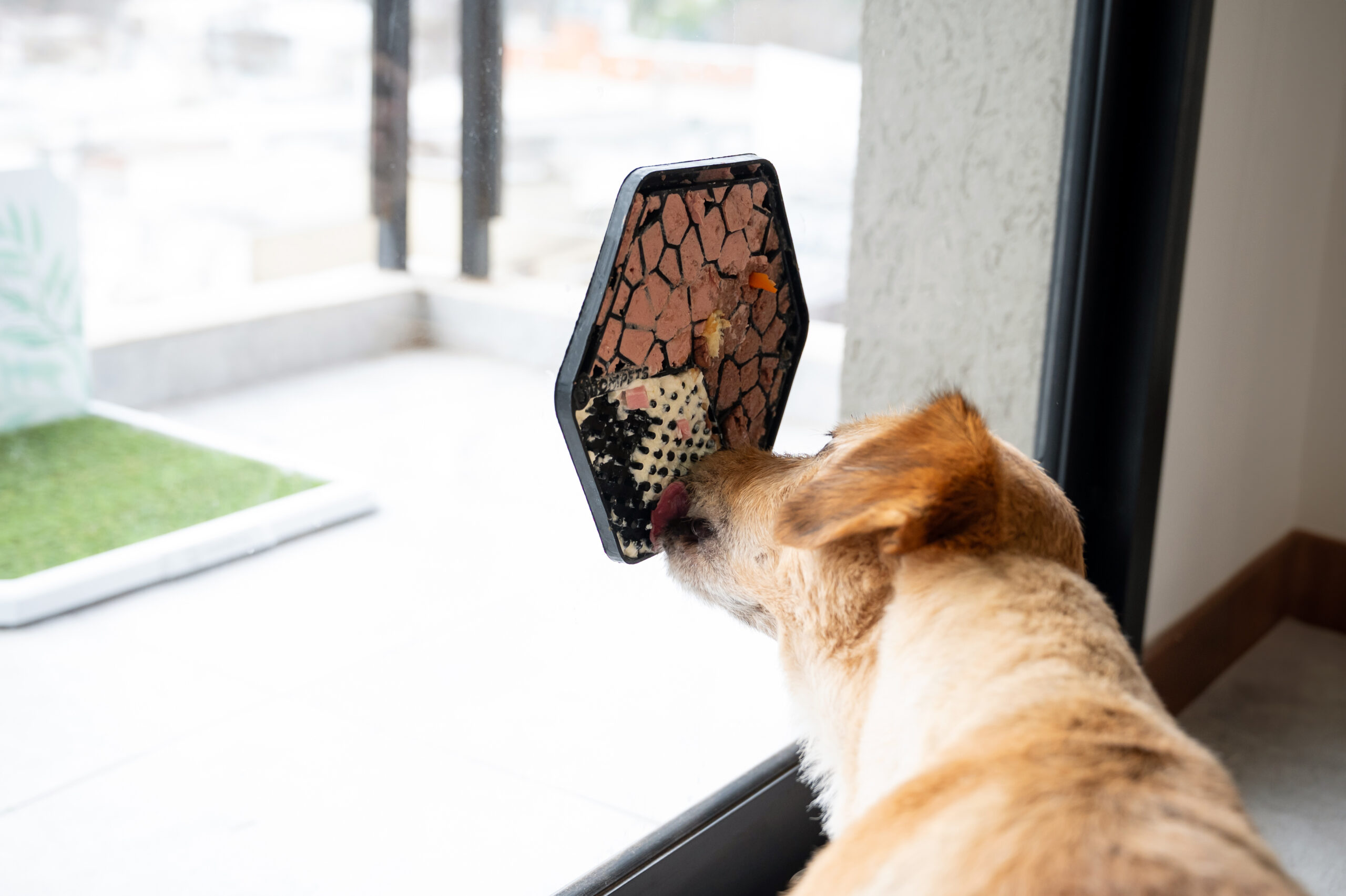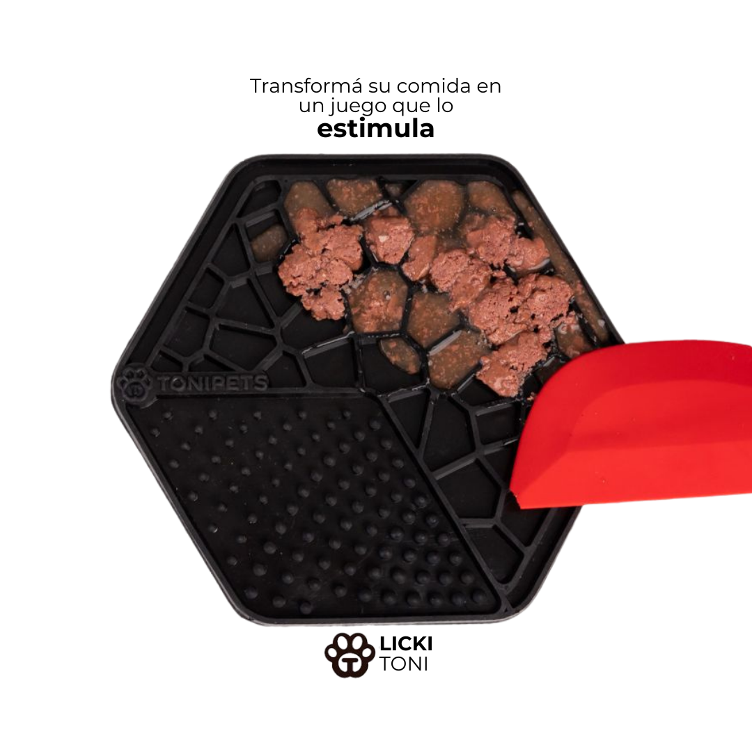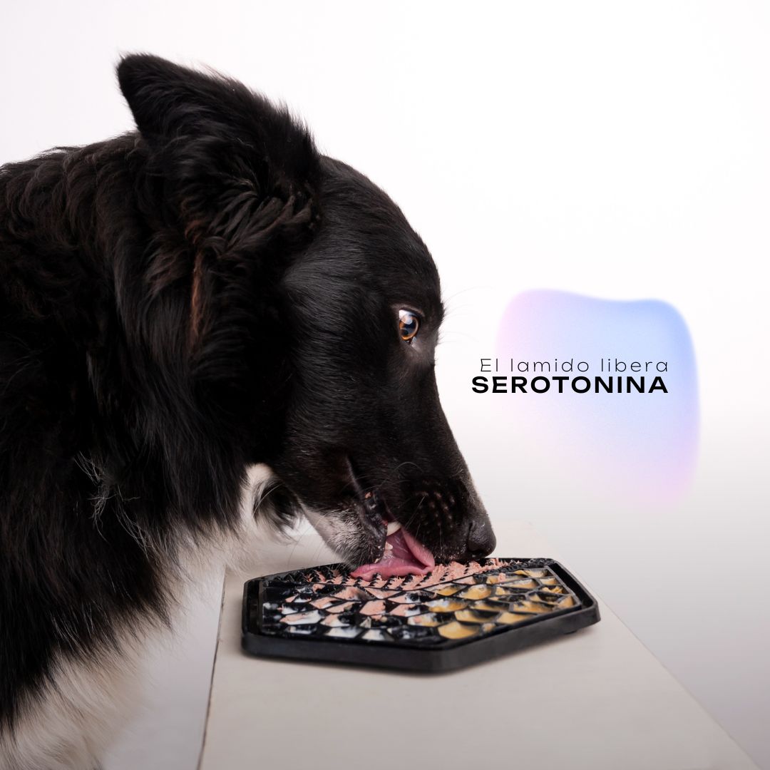 La Lickitoni no es solo una alfombra de lamer; es un aliado en la salud emocional de tu mascota. Su superficie con texturas en relieve invita a perros y gatos a explorar y lamer para obtener su alimento, una actividad que reduce drásticamente el comportamiento destructivo y la ansiedad por separación.