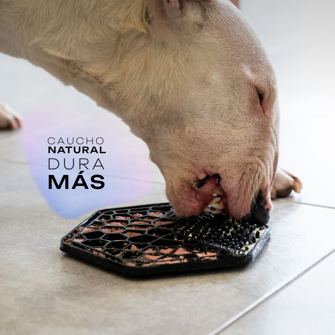 - Versatilidad de Uso: Gracias a sus ventosas, podés pegarla en la pared de la ducha para mantener a tu perro distraído durante el baño o en el suelo para su comida diaria.
